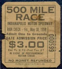 Tony Hulman's name re-appears on grandstand tickets and remains so through 1976. Note that the 1959 reserved parking stub has a serial number and a track diagram on the back as do the 1960, 1961 and 1962 while the 1968 general admission has a serial number but is blank.